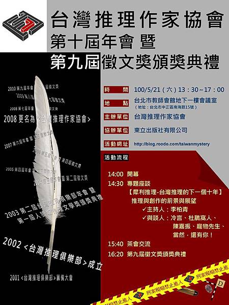 「台灣推理作家協會第十屆年會暨第九屆徵文獎頒獎典禮」